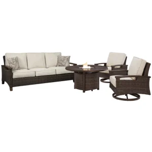 It’s not just furniture — it’s a whole vibe. This 5-piece set features weatherproof chairs and a gas-powered fire pit. Great for cool nights and outdoor entertaining.